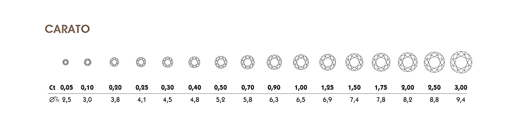 1)La prima caratteristica è la caratura che direttamente per il taglio brillante è anche la grandezza, anche se si riferisce al peso che è espresso in carati