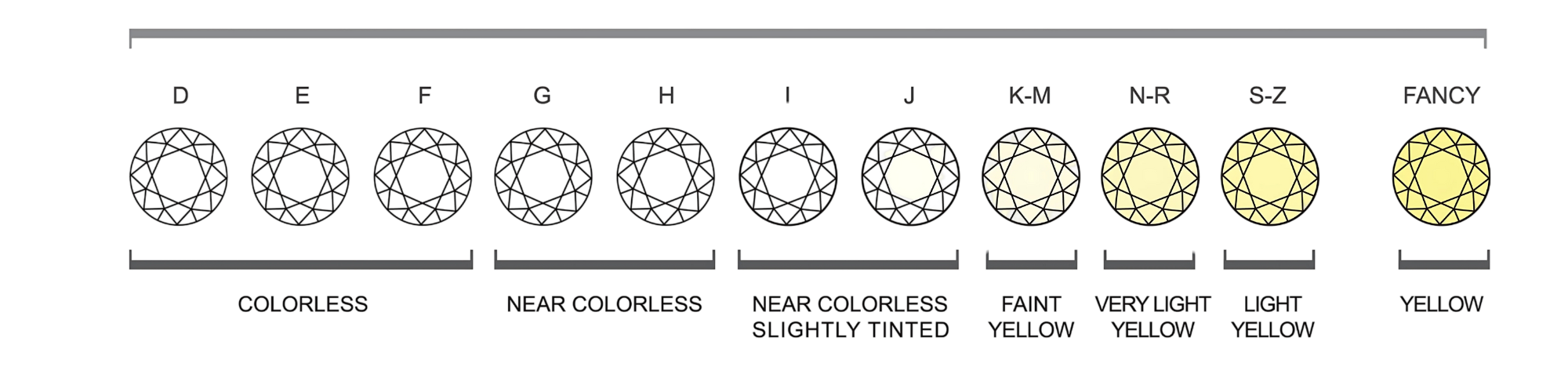 2) La seconda è il colore, ogni diamante bianco ha una gradazione di colore che parte dalla D dovè ho un diamante totalmente incolore fino alla Z, dove appare con un colore piu giallo.