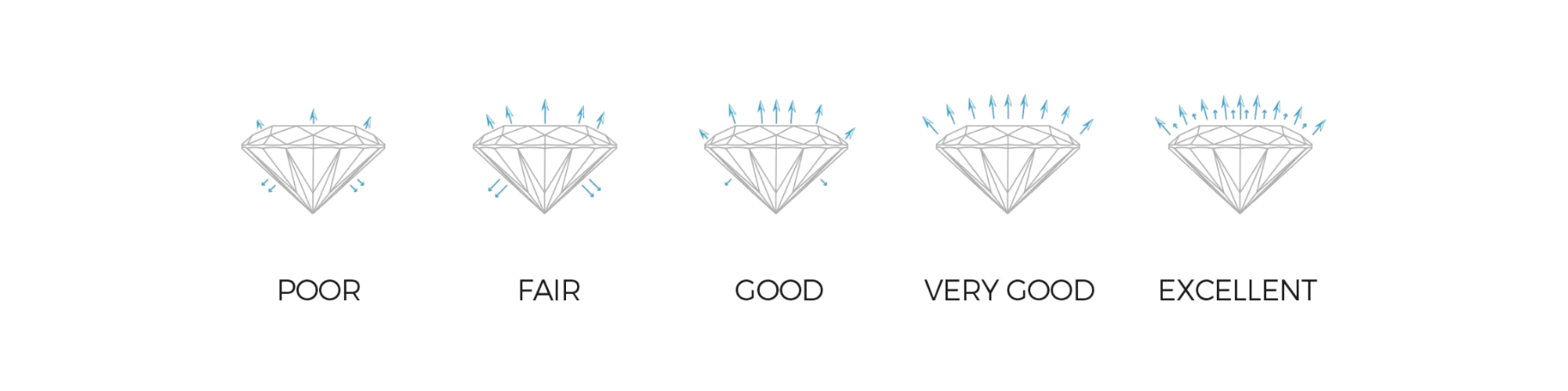 Un buon taglio permette al diamante di riflettere la luce in modo straordinario. Se il diamante è tagliato in modo preciso, la luce entra e rimbalza perfettamente all’interno della pietra, facendola brillare. Se il taglio è impreciso, la luce potrebbe disperdersi, riducendo la brillantezza del diamante.
